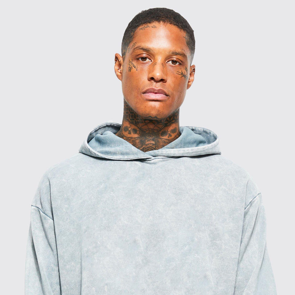 เสื้อฮู้ดผู้ชาย ผ้ายีนส์ฟอก