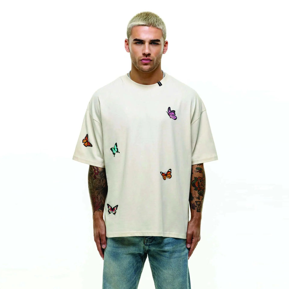 เสื้อยืดผ้าฝ้ายลายว่างสำหรับผู้ชายเสื้อยืดดีไซน์โอเวอร์ไซส์ดีไซน์เปิดไหล่เสื้อยืดลายพิมพ์คุณภาพตามสั่ง