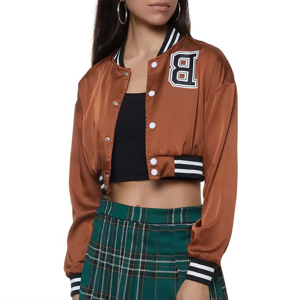 OEM Design Women's Collage University Regular Fit Soft Lining Satin Eco-Friendly Bomber Jacket Waterproof Windproof Front