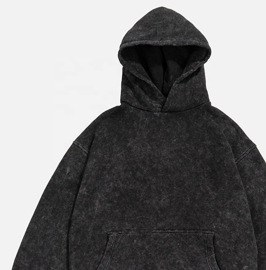 ชื่อผลิตภัณฑ์:เสื้อมีฮู้ดสีดำฟอกสี