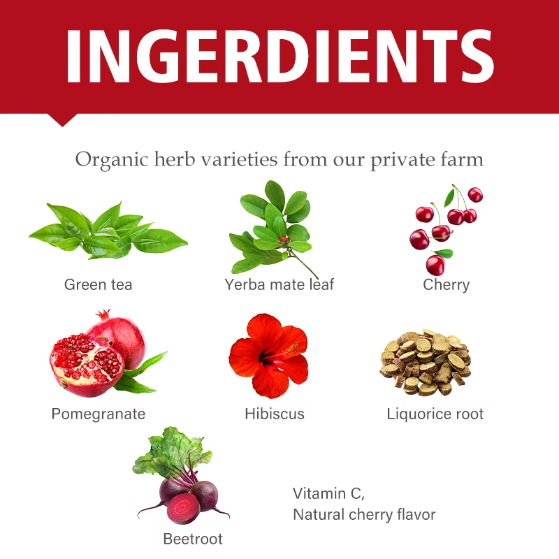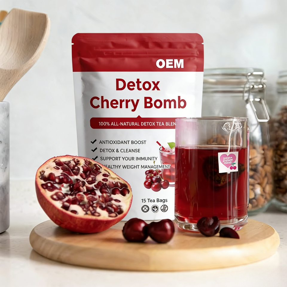 ชาสมุนไพร OEM Detox Cherry Bomb ชาเขียว เยอร์บา มาเต้ ผสมฮิบิสคัสและเชอร์รี่ ช่วยเสริมสารต้านอนุมูลอิสระ เสริมสร้างภูมิคุ้มกัน 100% จากธรรมชาติ บรรจุ 15 กล่อง