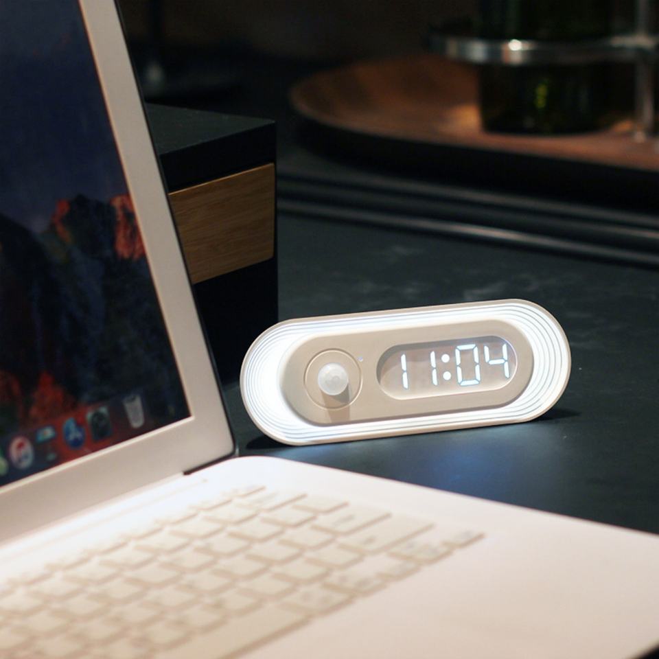 ไฟ LED ติดเตียงแบบหรี่แสงได้ OEM พร้อมเซ็นเซอร์ตรวจจับความเคลื่อนไหว ไฟกลางคืนข้างเตียงพร้อมจอแสดงเวลา