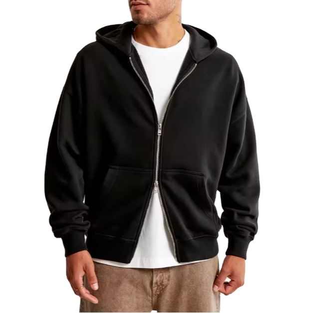 เสื้อฮู้ดแบบซิปคู่สำหรับผู้ชายมีฮู้ดพิมพ์โลโก้แบบกำหนดเองเสื้อฮู้ดบ็อกซี่มีซิปสองชั้น