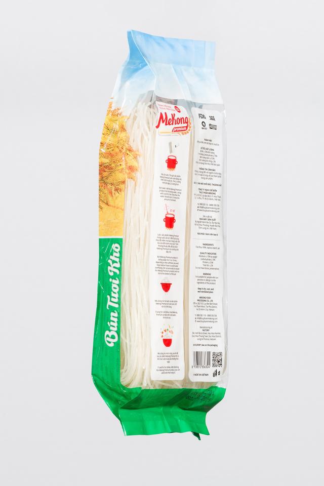 วุ้นเส้นข้าวแห้ง OEM 200 กรัม ไม่ใช่พืช GMO สำหรับซุปและหม้อไฟ ผลิตในเวียดนาม ยี่ห้อเมกง พรีเมียม