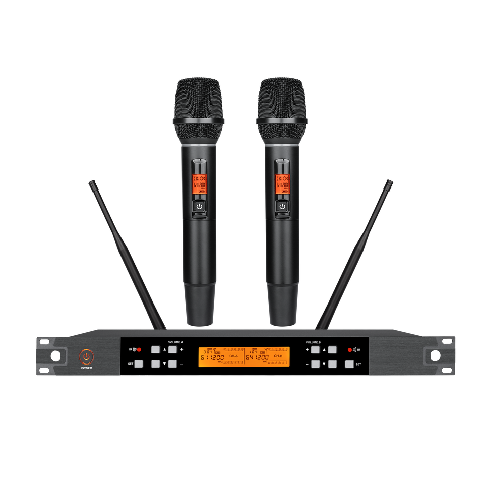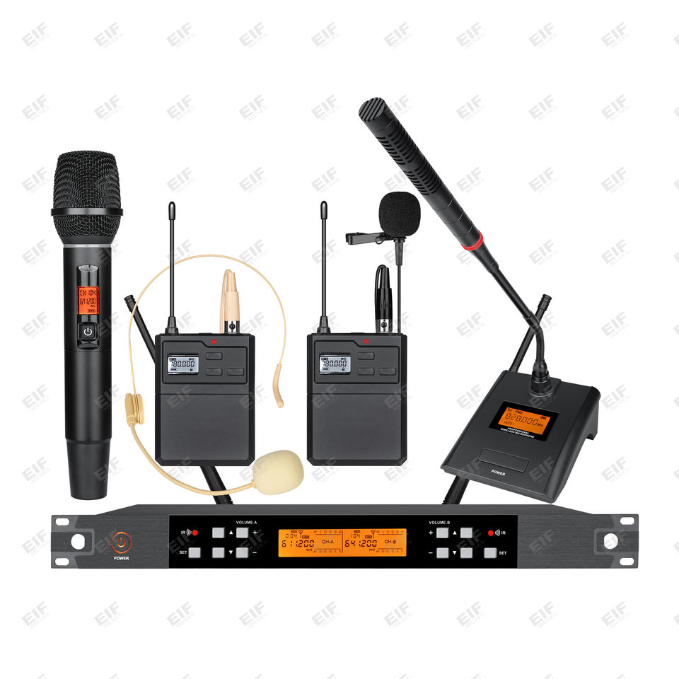 ไมโครโฟนไร้สายแบบคาร์ดิออยด์ 2 ช่อง EIF-1000 น้ำหนักเบา ใช้ได้ทั้งแบบมือถือและแบบคาดศีรษะ ช่องต่อ XLR ลดเสียงรบกวน เหมาะสำหรับร้องคาราโอเกะ
