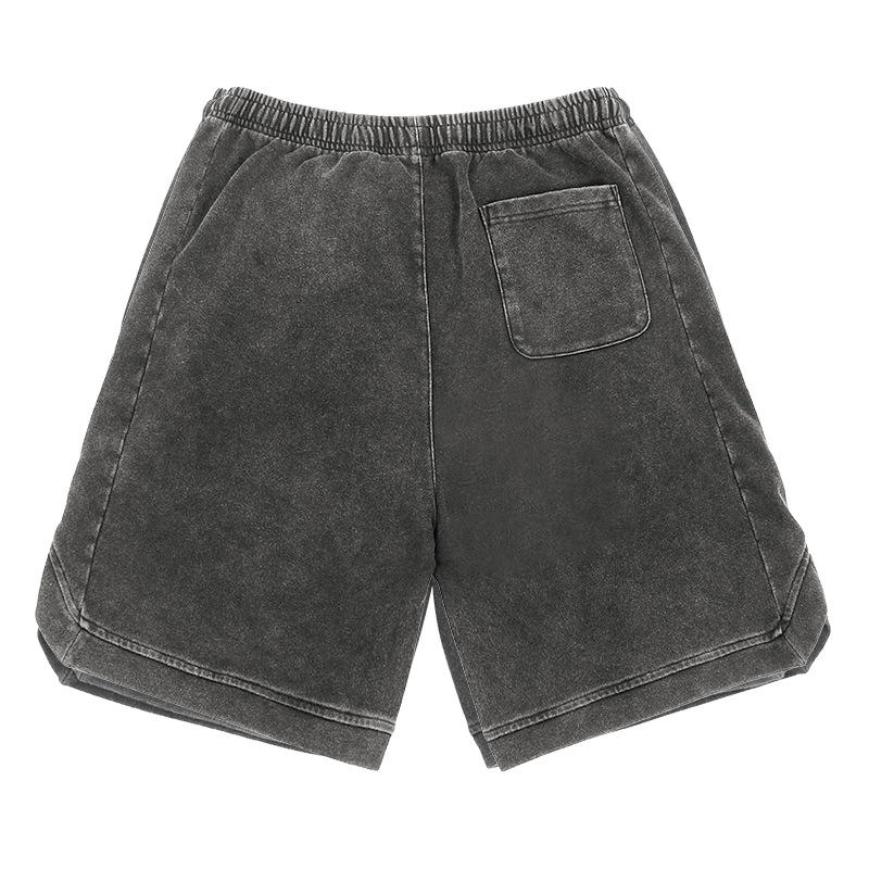 บริการ OEM กางเกงขาสั้นทรงกลางผู้ชาย รุ่น ET318 สไตล์วินเทจ ล้างสีแบบ Acid Wash ผ้า 380GSM 100% ผ้าฝ้าย รูดเชือกผูก รับทำโลโก้ตามสั่ง