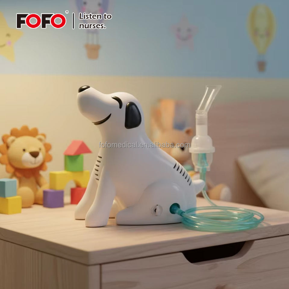 เครื่องพ่นยาไฟฟ้าสำหรับเด็ก OEM รูปทรงการ์ตูนสัตว์เลี้ยง (สุนัข) แบบคอมเพรสเซอร์ ใช้เสียบปลั๊ก