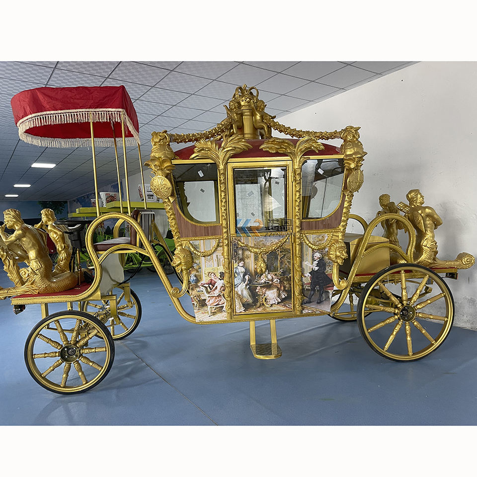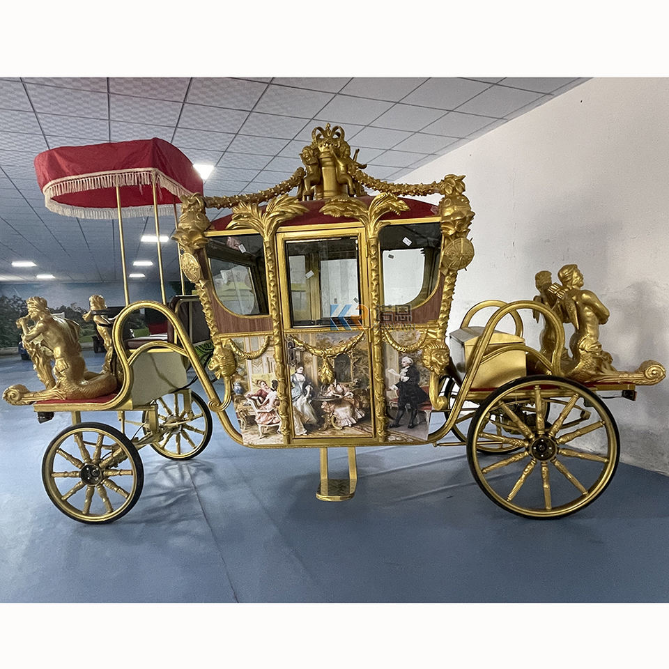 OEM Electric Double Row Red Gold Royal Wedding Carriage Classical Vintage Horse Drawn 4 Wheels