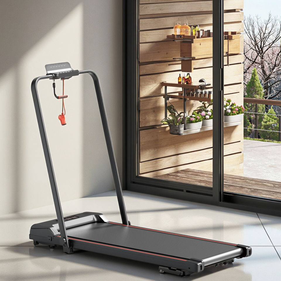 ลู่วิ่งไฟฟ้า OEM แบบพับได้ หน้าจอ LED สำหรับใช้ในบ้าน รุ่น XP1 ไม่มีระบบวัดอัตราการเต้นของหัวใจ ไม่มีการนับแคลอรี่ มอเตอร์ 0.75 แรงม้า ความเร็ว 1-12 กม./ชม.