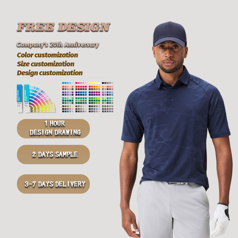 เสื้อโปโลสำหรับผู้ชายเสื้อกอล์ฟผ้าโพลีเอสเตอร์100ลายพรางป้องกันริ้วรอยระบายอากาศได้ดีออกแบบโลโก้ได้ตามต้องการ