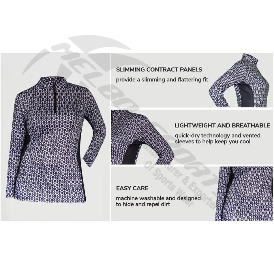 OEM ผู้ผลิตเสื้อผ้าขี่ม้าขี่ม้าพิมพ์เสื้อฐานชั้น Dressage ขี่ม้าผู้หญิงเสื้อแขนสั้น