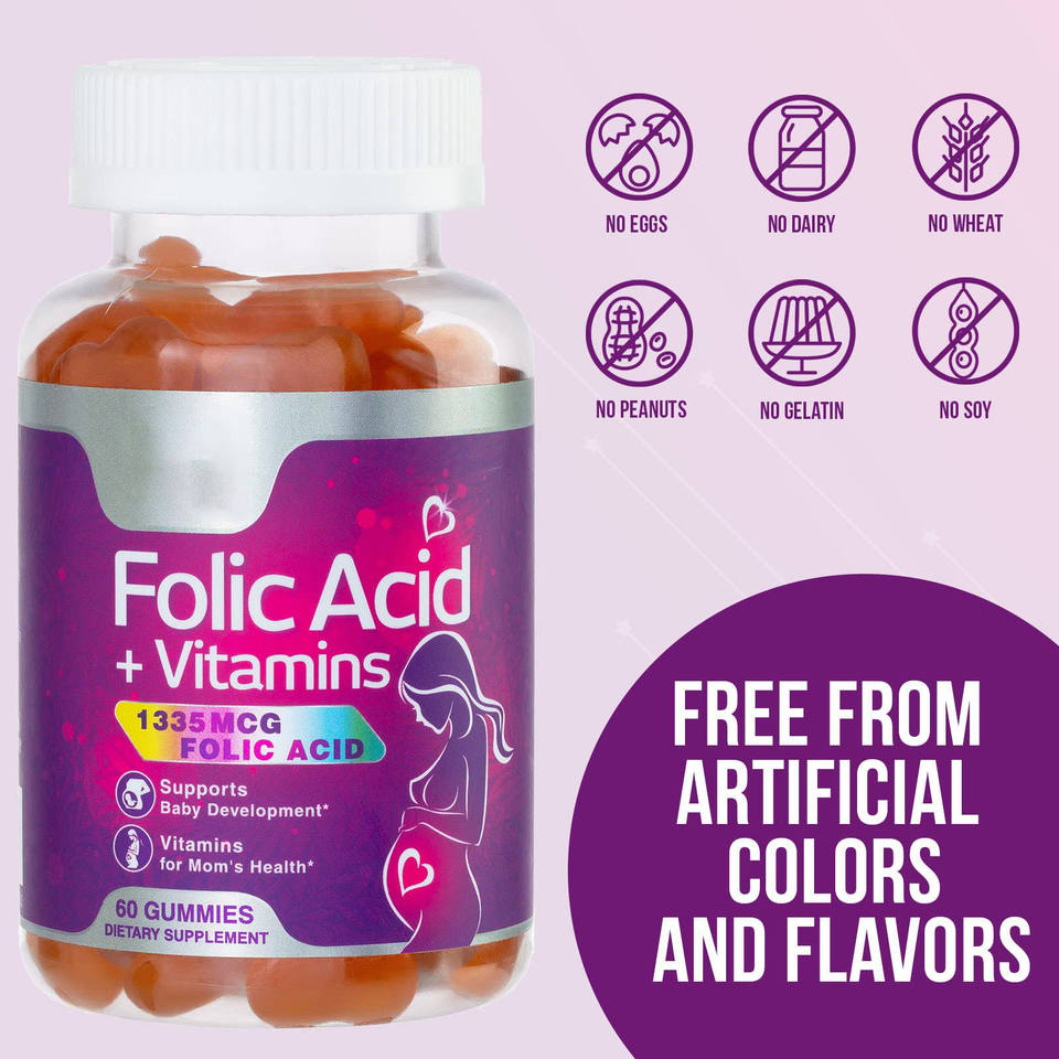 วิตามินก่อนคลอด OEM สูตรสำคัญ สำหรับผู้หญิง วิตามินโฟลิกแอซิดแบบกัมมี่ สำหรับผู้ทานมังสวิรัติ