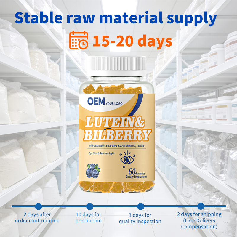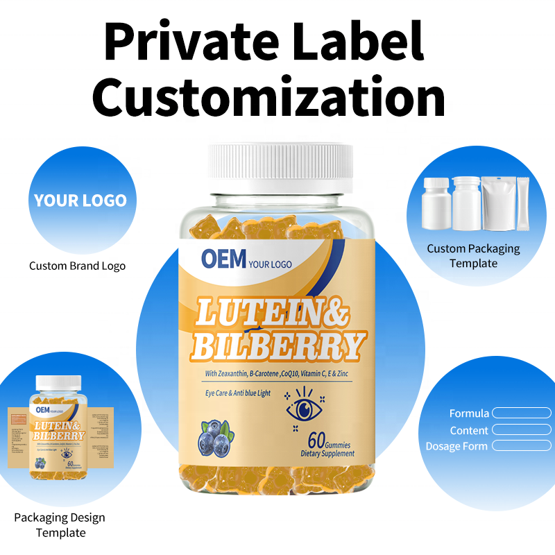 วิตามินบำรุงสายตา OEM บลูเบอร์รี่คอมเพล็กซ์ เบต้าแคโรทีน ลูทีน ซีแซนทีน แบบกัมมี่ ปริมาณขั้นต่ำในการสั่งซื้อที่ยืดหยุ่น ระยะเวลาดำเนินการเร็ว ได้รับการรับรอง cGMP และ COA