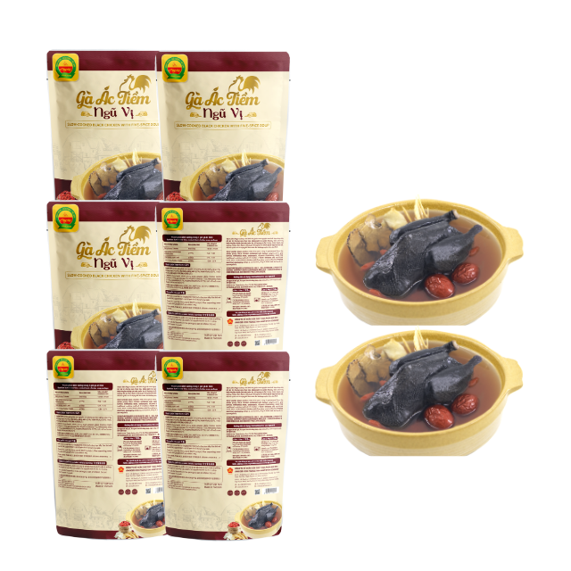 OEM FCE HACCP 24PS ไก่ดำปรุงสุกช้า350กรัมซุปไอเอสโอห้าเครื่องเทศขายส่งเวียดนามซุปอาหารเพื่อสุขภาพที่มีคุณค่าทางโภชนาการ MRE