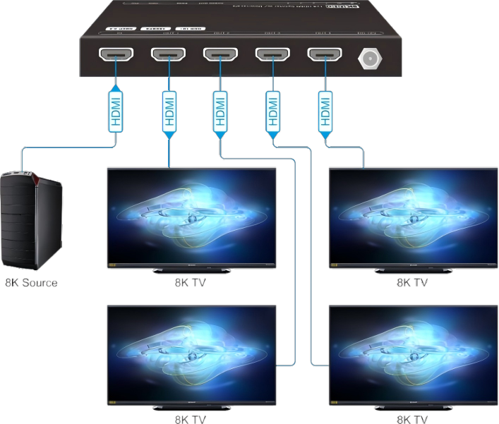 กล่องกระจายสัญญาณวิดีโอ4พอร์ตสำหรับ2.1 HDMI 1x4 1 in 4 OUT พร้อมทีวี True 8K สำหรับเครื่องแยก HDMI สำหรับวิดีโอที่ดีกว่า