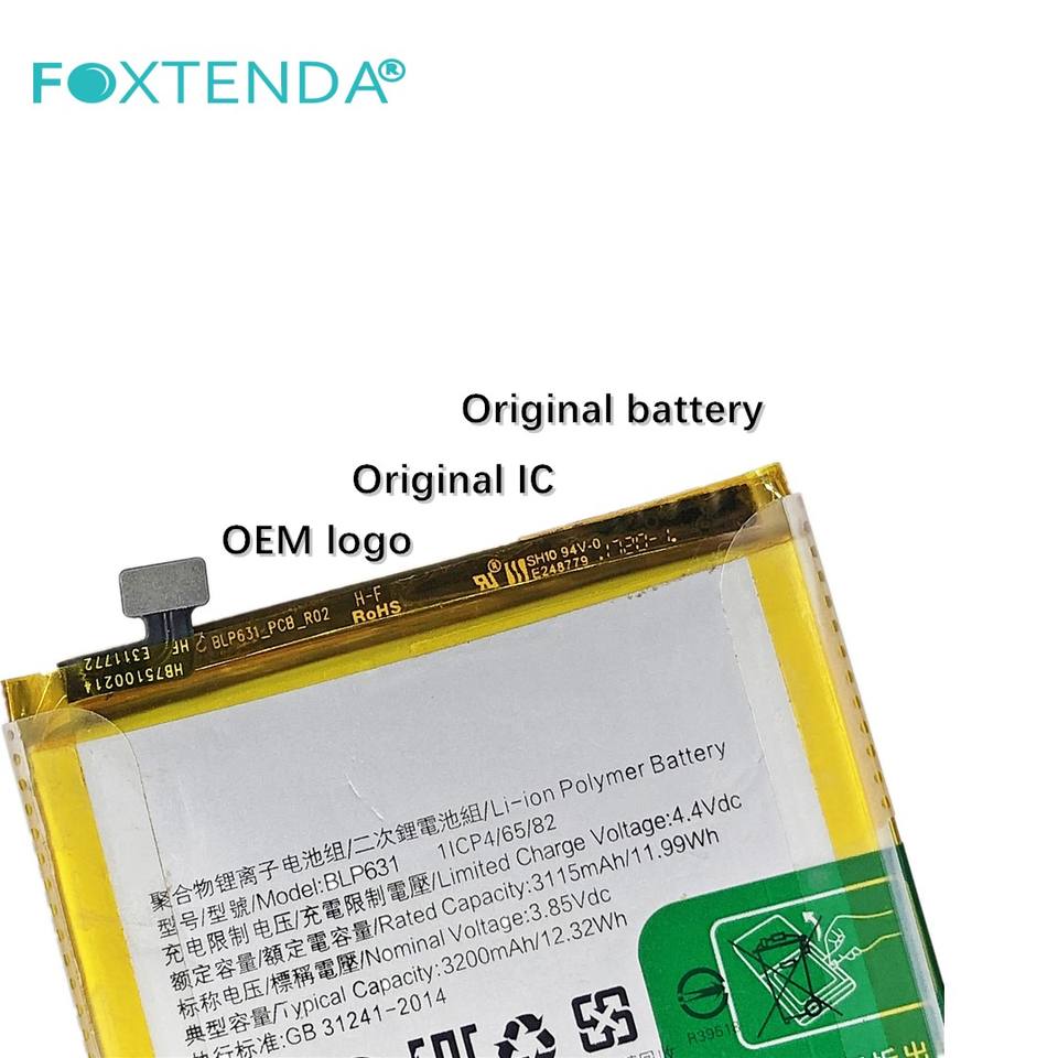 แบตเตอรี่ลิเธียมโพลิเมอร์เกรด AAA จากโรงงาน OEM รุ่น BLP631 ความจุ 3200mAh สำหรับ Oppo F3/F5/F7/A73/A77 ขายส่ง มีสินค้าในสต็อก สีเงิน กวางโจว