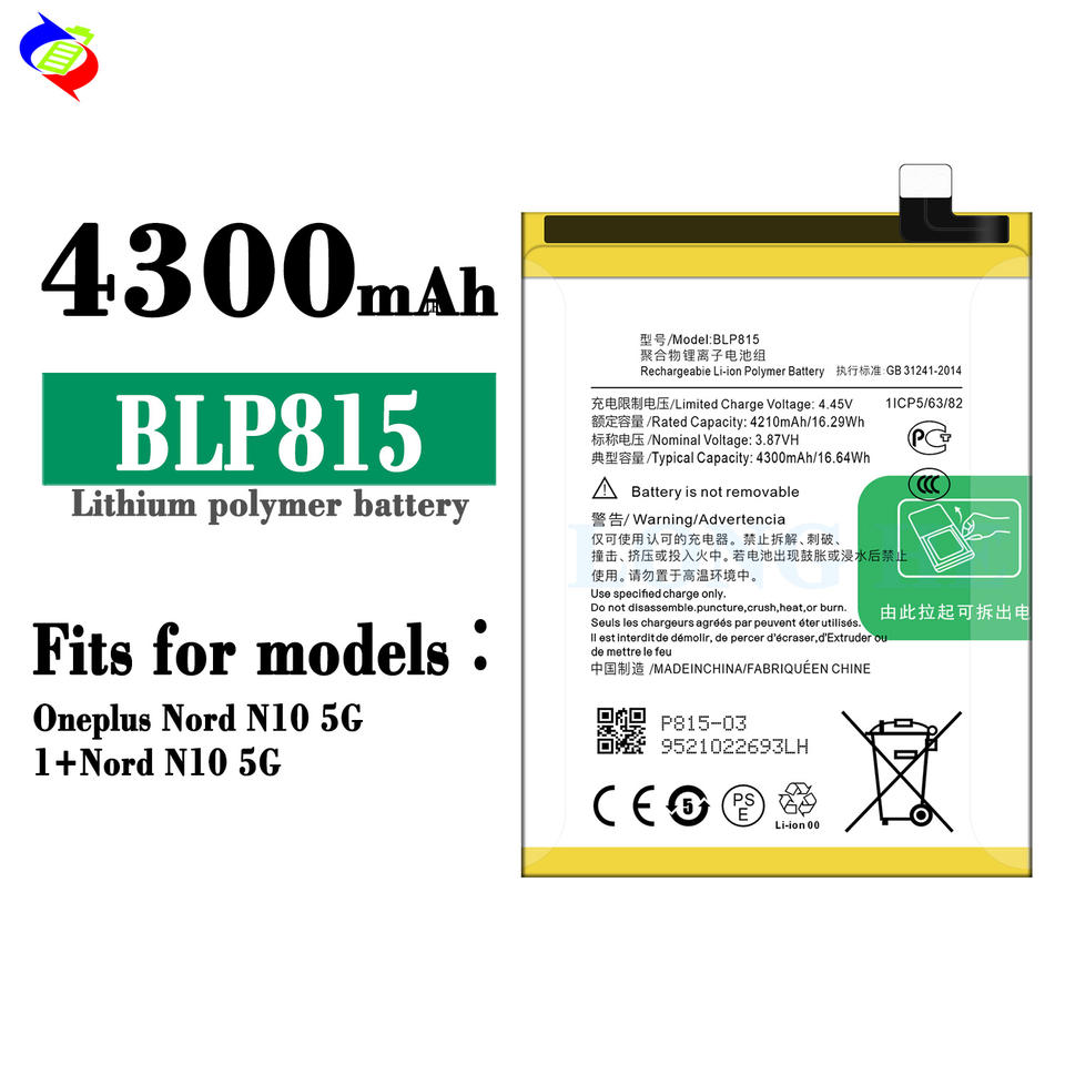 แบตเตอรี่ BLP815สำหรับสมาร์ทโฟน OnePlus Nord N10 5G BE2029แบตเตอรี่อะไหล่4300mAh