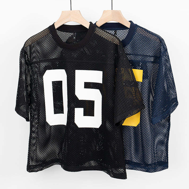 เสื้อเจอร์ซีย์ฟุตบอลคอวีสำหรับผู้ชายเสื้อถักตาข่ายถักแบบระเหิด