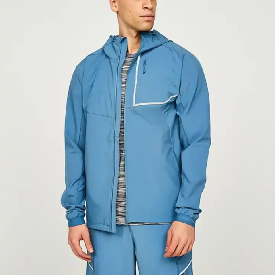 ชุดวอร์มกันลมแบบมีฮู้ดพิมพ์ลายสะท้อนแสง 3 เมตร ผลิตตามสั่งจากโรงงาน OEM พร้อมกางเกงผ้าโพลีเอสเตอร์/คอตตอนสำหรับผู้ชาย