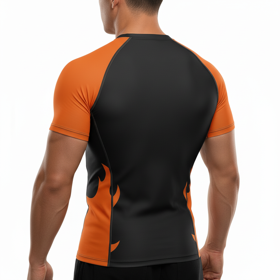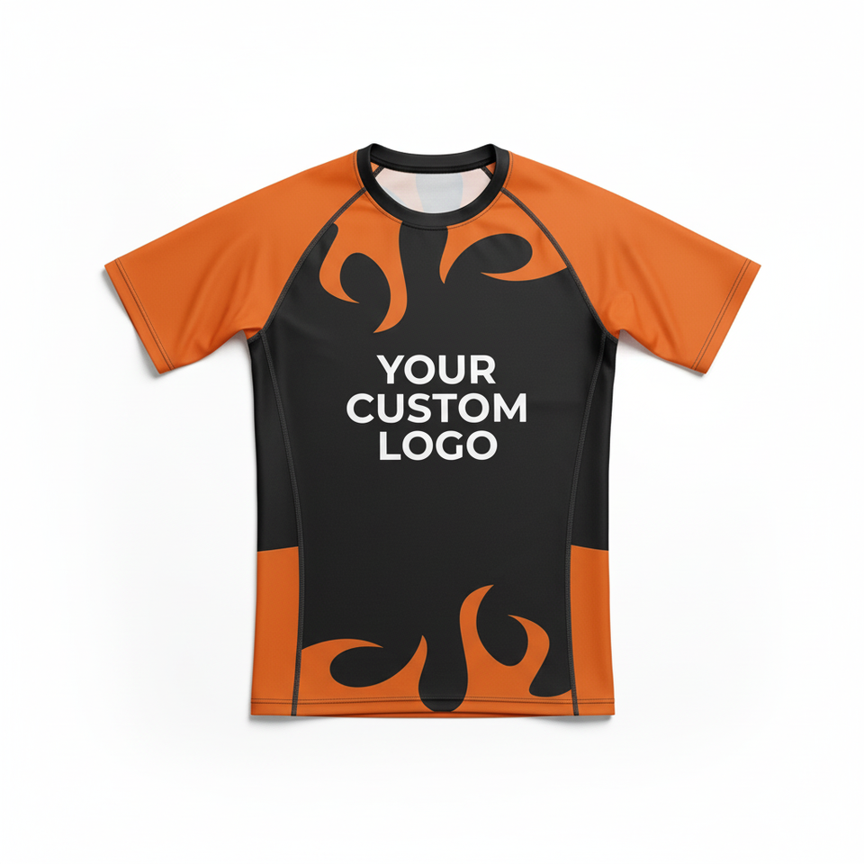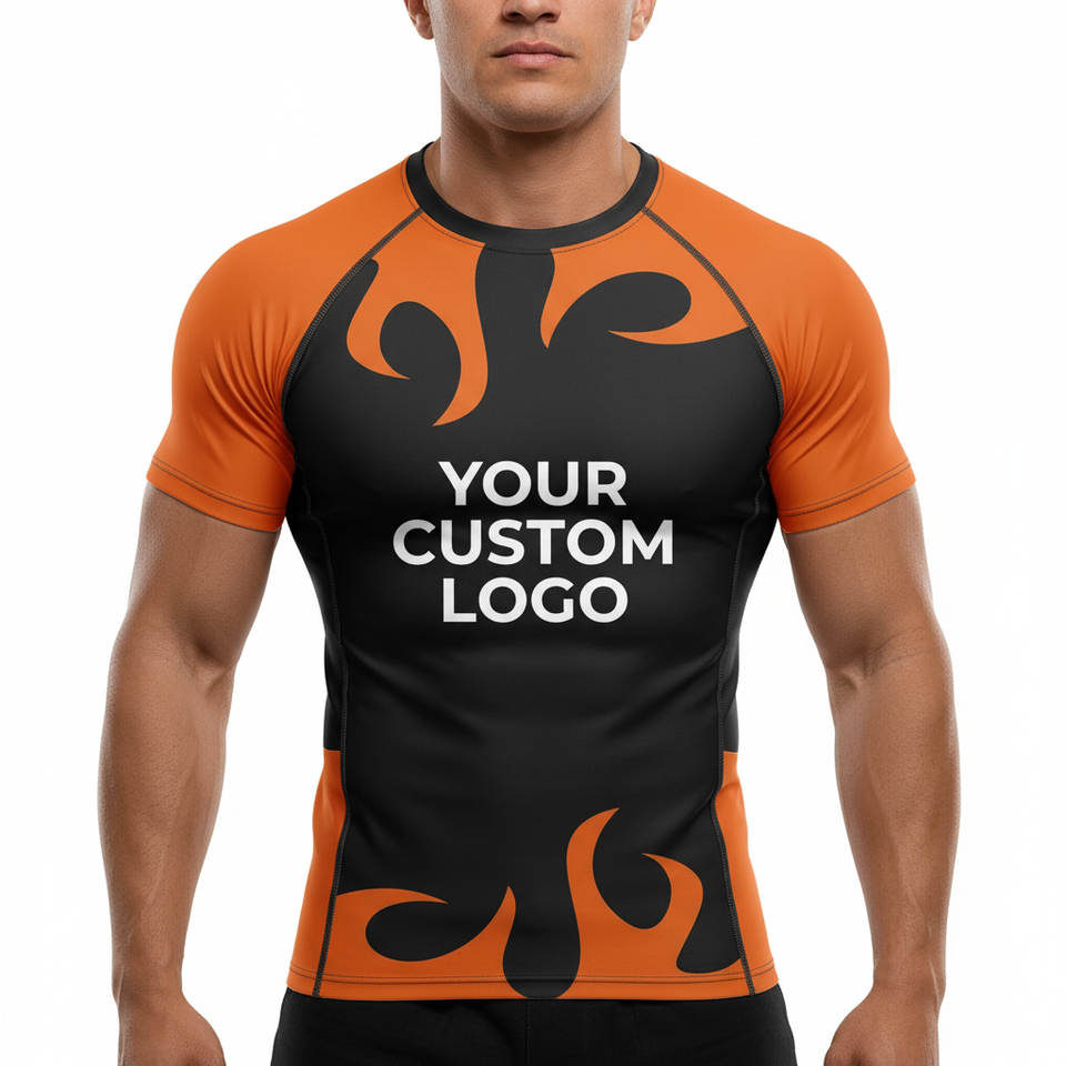 OEM Factory Custom MMA Training Rash Guard Spandex Short Sleeve Washed Sun Protection Compression Fabric rowing Baselayer
