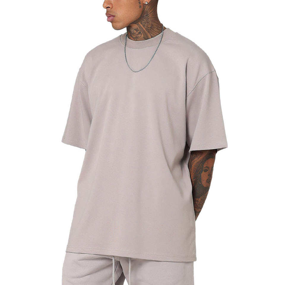 โรงงาน OEM ผลิตเสื้อยืดผู้ชายทรงโอเวอร์ไซส์ ผ้าคอตตอนหนา ตกไหล่ ปักลาย สไตล์สตรีทแวร์