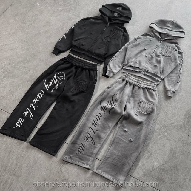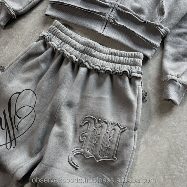OEM Factory Custom Winter Unisex Zip-Up Jacket Hoodies Set 400gsm French Terry Cotton Regular Fit Streetwear Tracksuit