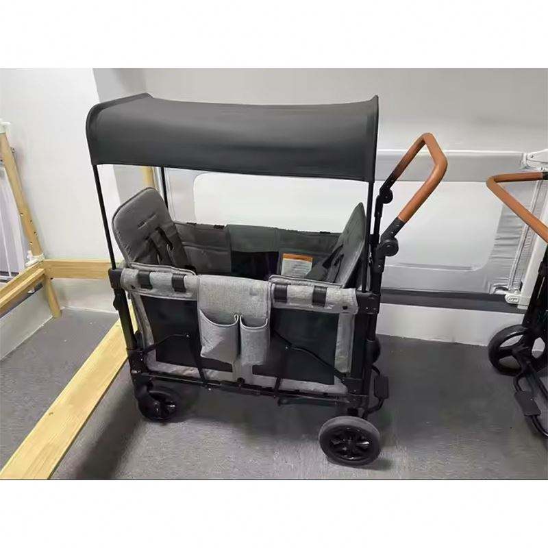 รถเข็นเด็กแบบพับได้สองที่นั่งสุดหรูจากโรงงาน OEM สำหรับเดินทาง รถเข็นเด็กแฝด 4 ที่นั่ง พร้อมที่บังแดดสำหรับเด็ก 4 คน