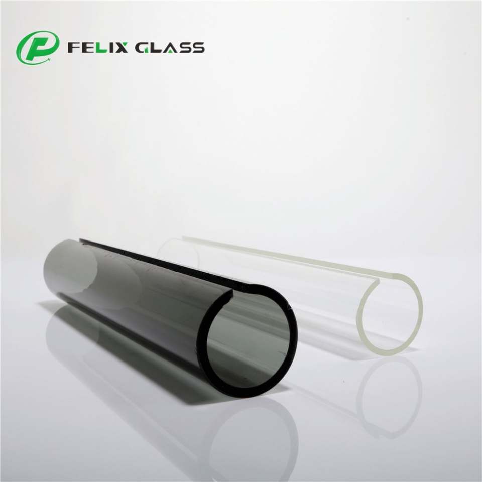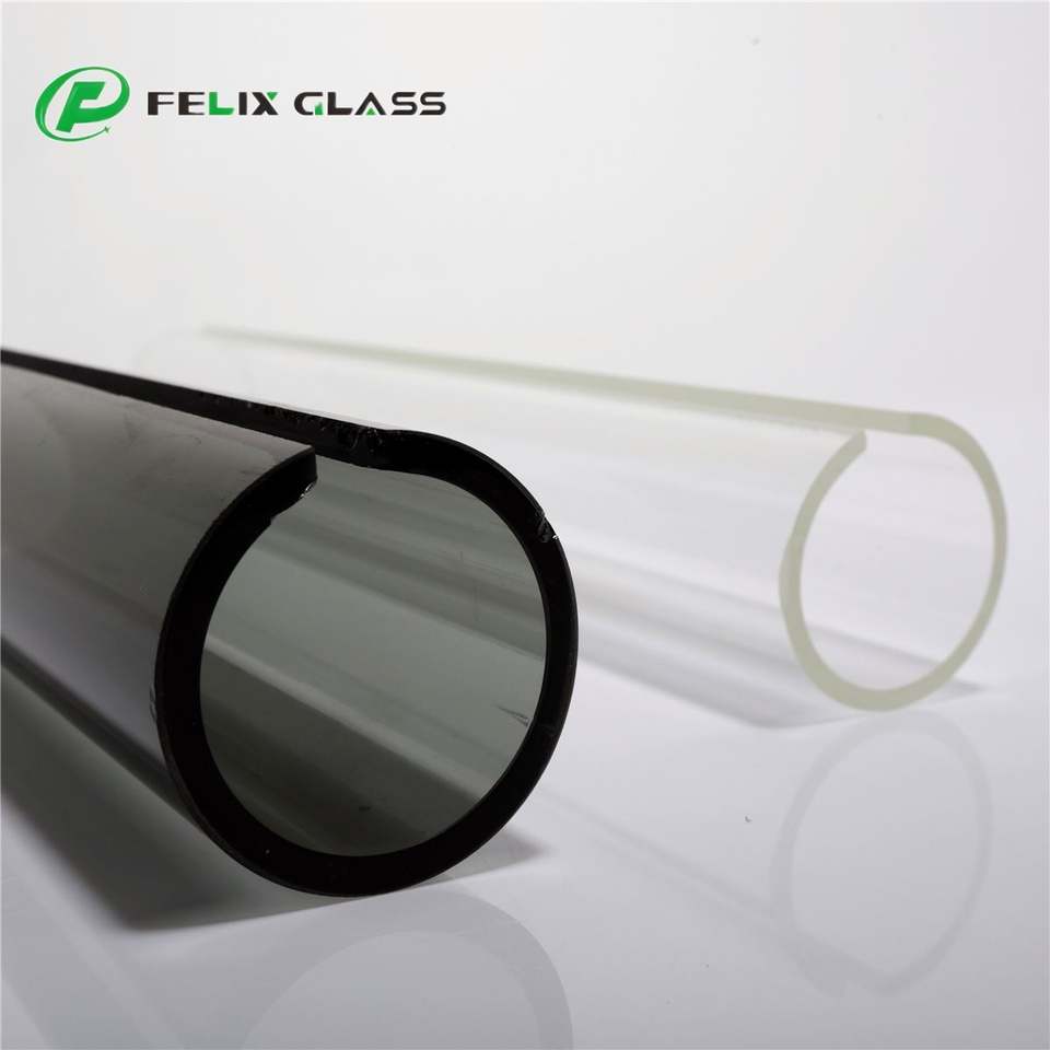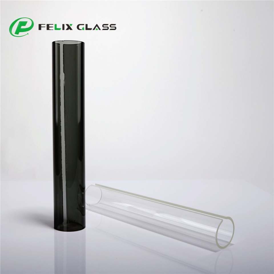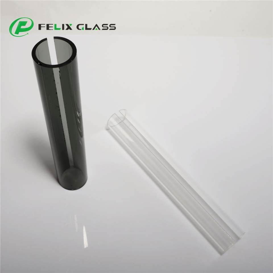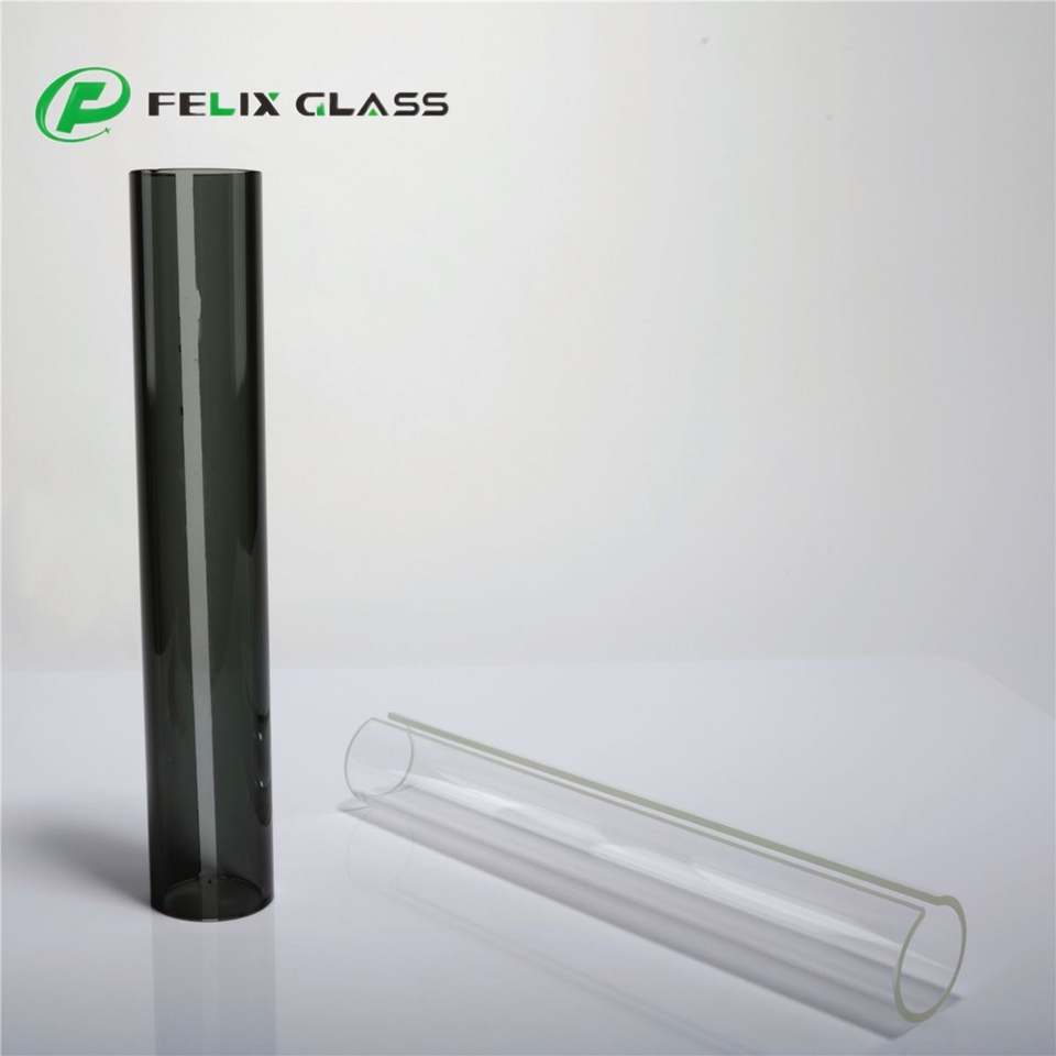 โคมไฟแก้วโบโรซิลิเกต 3.3 สีเทาควันบุหรี่ ทรงหลอด ฐานแบน ขอบขัดเงา สำหรับโคมไฟระย้าในบ้าน แสงสว่างภายในอาคาร จากโรงงาน OEM