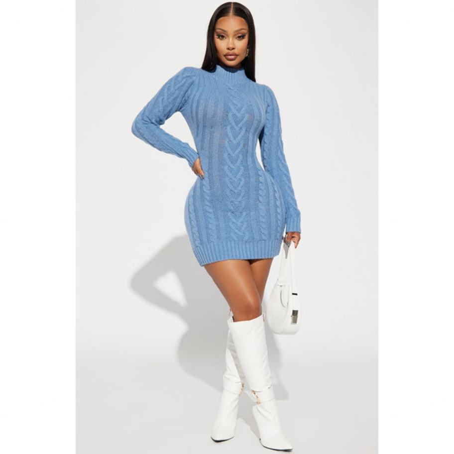 โรงงาน OEM ผลิตเสื้อสเวตเตอร์แขนยาวคุณภาพสูง ชุดเดรสลำลองสั้นสำหรับผู้หญิง