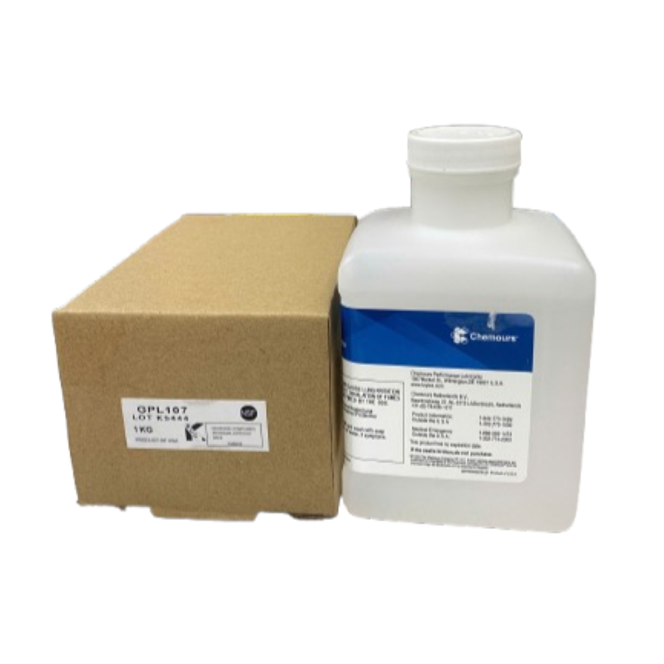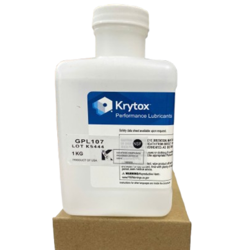 Krytox GPL 107น้ำมัน pfpe จาก USA น้ำมันหล่อลื่นอุตสาหกรรม1กก. น้ำมันพื้นฐาน pfpe ความหนืดต่ำการหล่อลื่นที่เชื่อถือได้