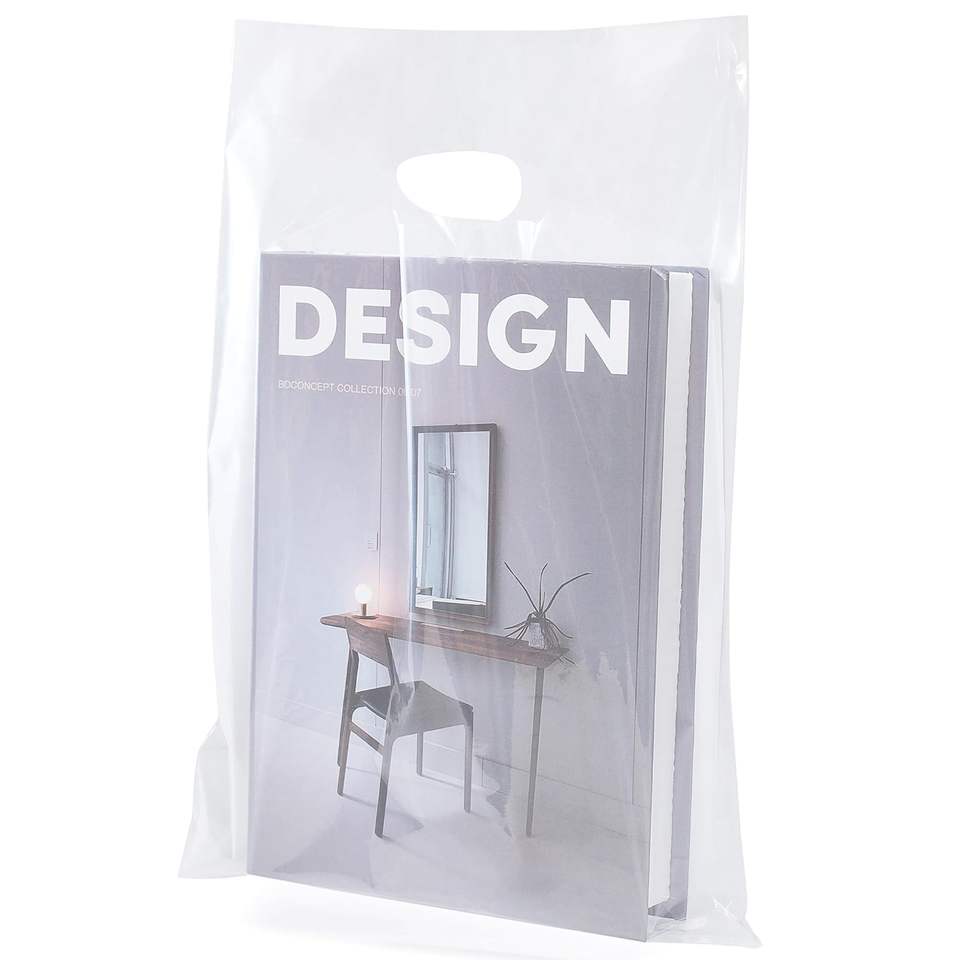 ถุงผ้าทรงเป้าพิมพ์แบบย่อยสลายได้ถุงใส่เสื้อยืดพลาสติกพร้อมที่จับแบบไดคัทยอมรับโลโก้ตามสั่ง