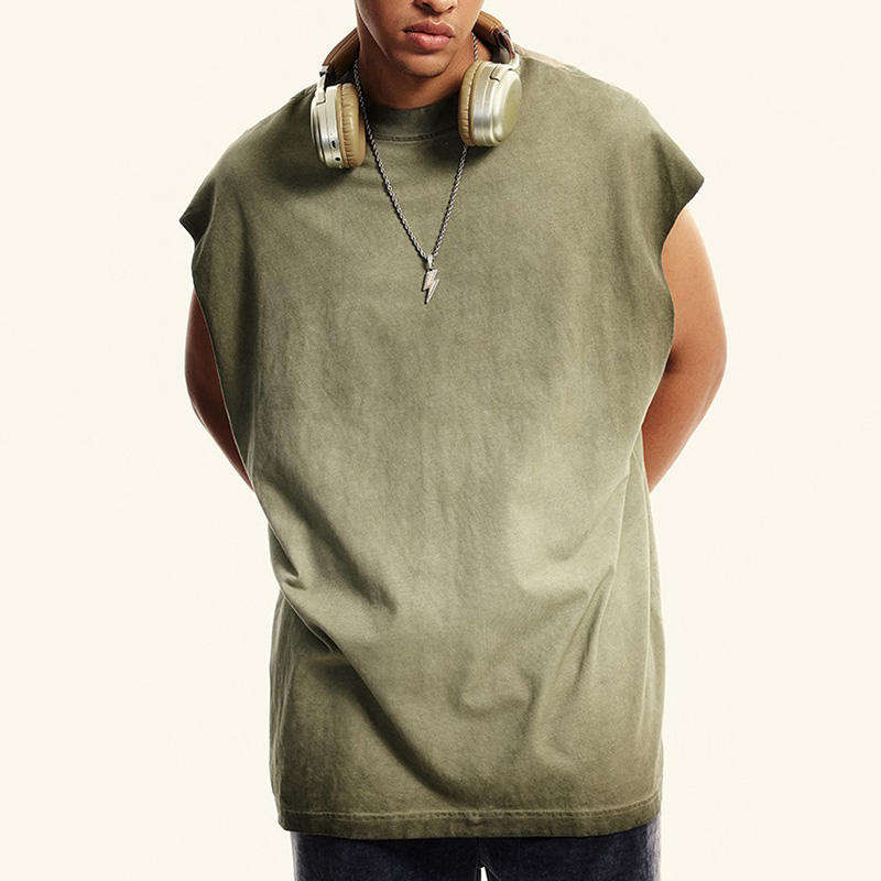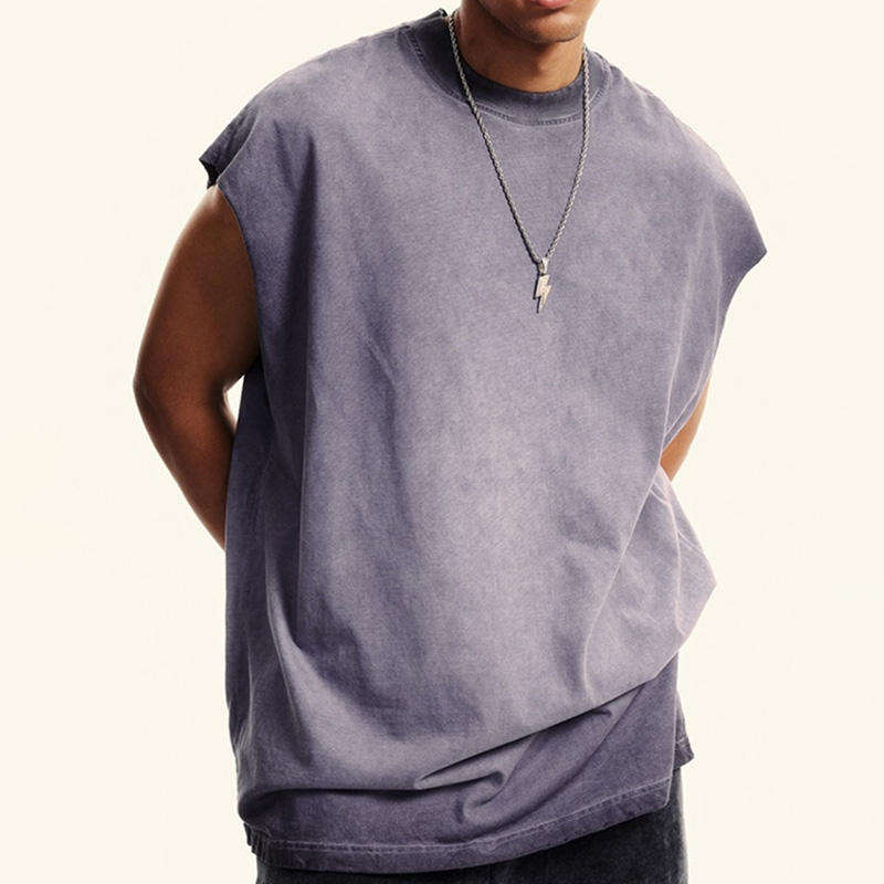 เสื้อกล้ามโอเวอร์ไซส์ทรงหลวมจากโรงงาน OEM ผ้าหนัก 260 กรัม สไตล์ฮิปฮอป ลุค Dirty Washed สำหรับผู้ชาย