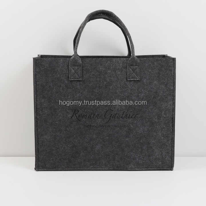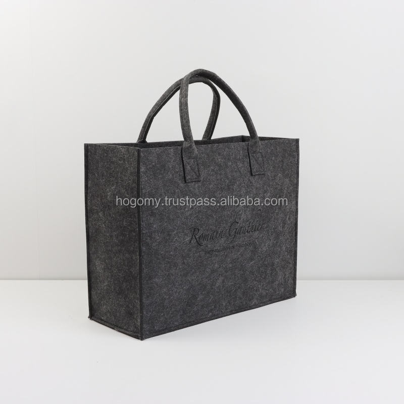 กระเป๋าโท้ททรงสี่เหลี่ยมผืนผ้าสำหรับเดินทาง ทำจากผ้าสักหลาด PET สำหรับธุรกิจ 男女ใช้ได้ ราคาโรงงาน OEM สีเทาเข้ม รับสกรีนโลโก้ด้วยเลเซอร์