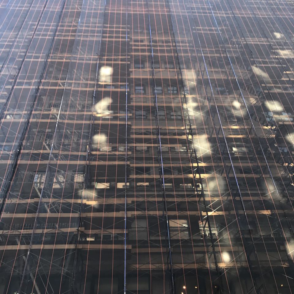 ตาข่ายถัก HDPE แบบใหม่ตาข่ายนั่งร้านพลาสติกตาข่ายหน่วงไฟ NFPA 701 CPA กำหนดสีเราเอง