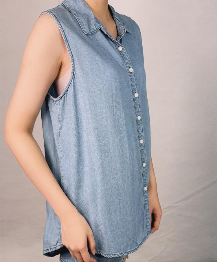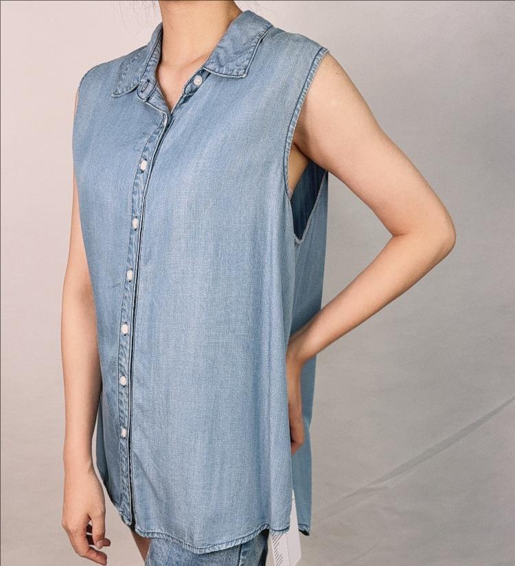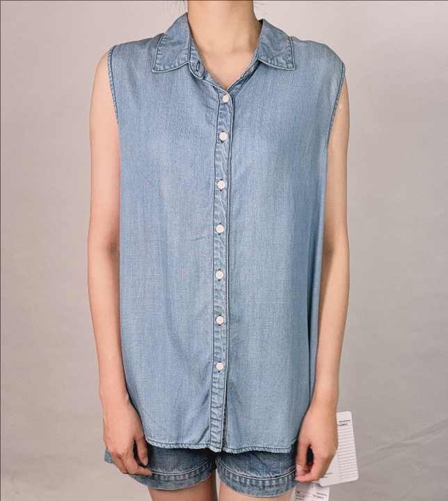เสื้อยีนส์มีกระดุมแขนกุดสำหรับผู้หญิงเสื้อยีนส์ทรงหลวมสำหรับผู้หญิงใส่ในฤดูร้อน