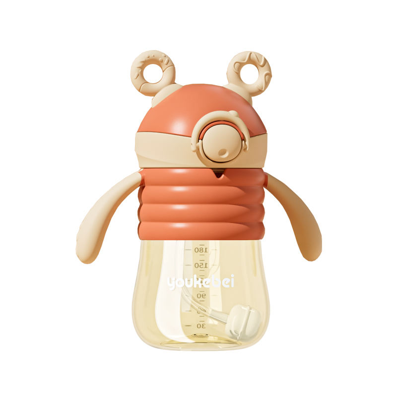 ขวดนมสำหรับเด็กพร้อมถ้วยหัดดื่มและเรียนรู้ทำจากพลาสติกไร้สาร BPA 300มล. ขวดนมกันน้ำได้