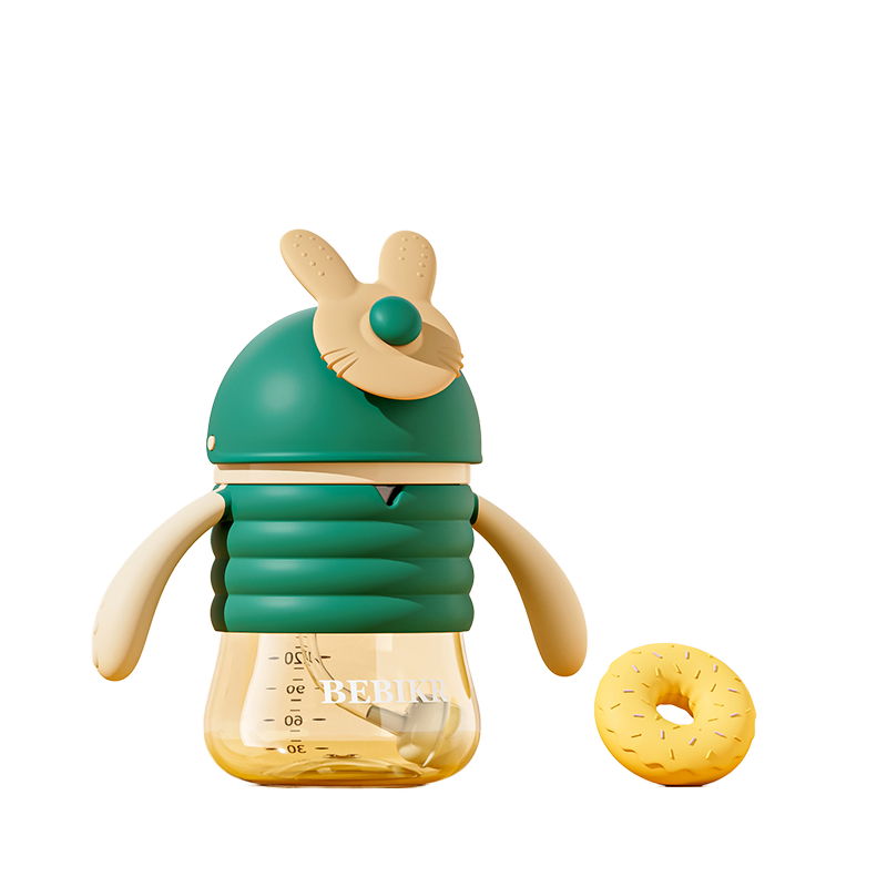 ขวดซิลิก้าเจลหัวกระต่ายขนาด300มล. ทรงตรงขนาดใหญ่สำหรับเด็กทารกแบบสไลด์ดื่มน้ำรูปสัตว์ผลิตจากโรงงาน OEM