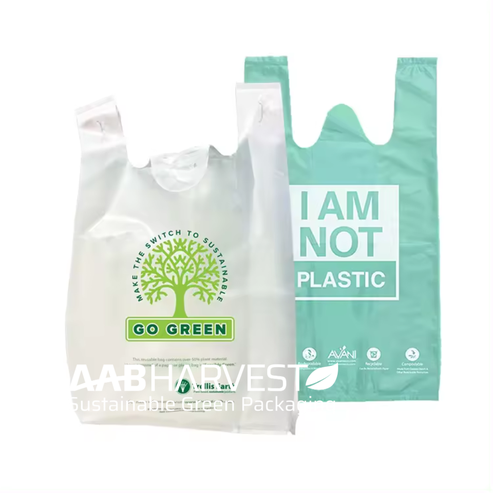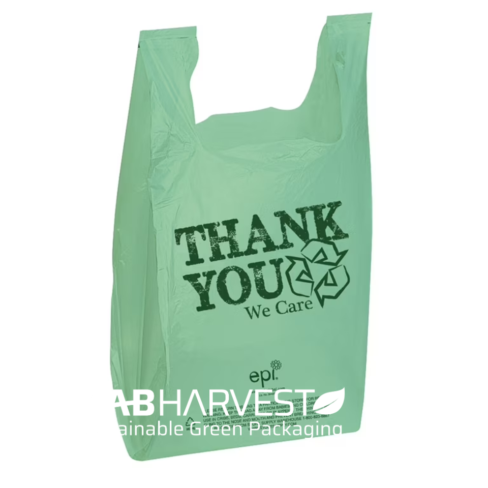 ถุงใส่เสื้อยืดแบบย่อยสลายได้สำหรับร้านขายของชำร้านอาหาร