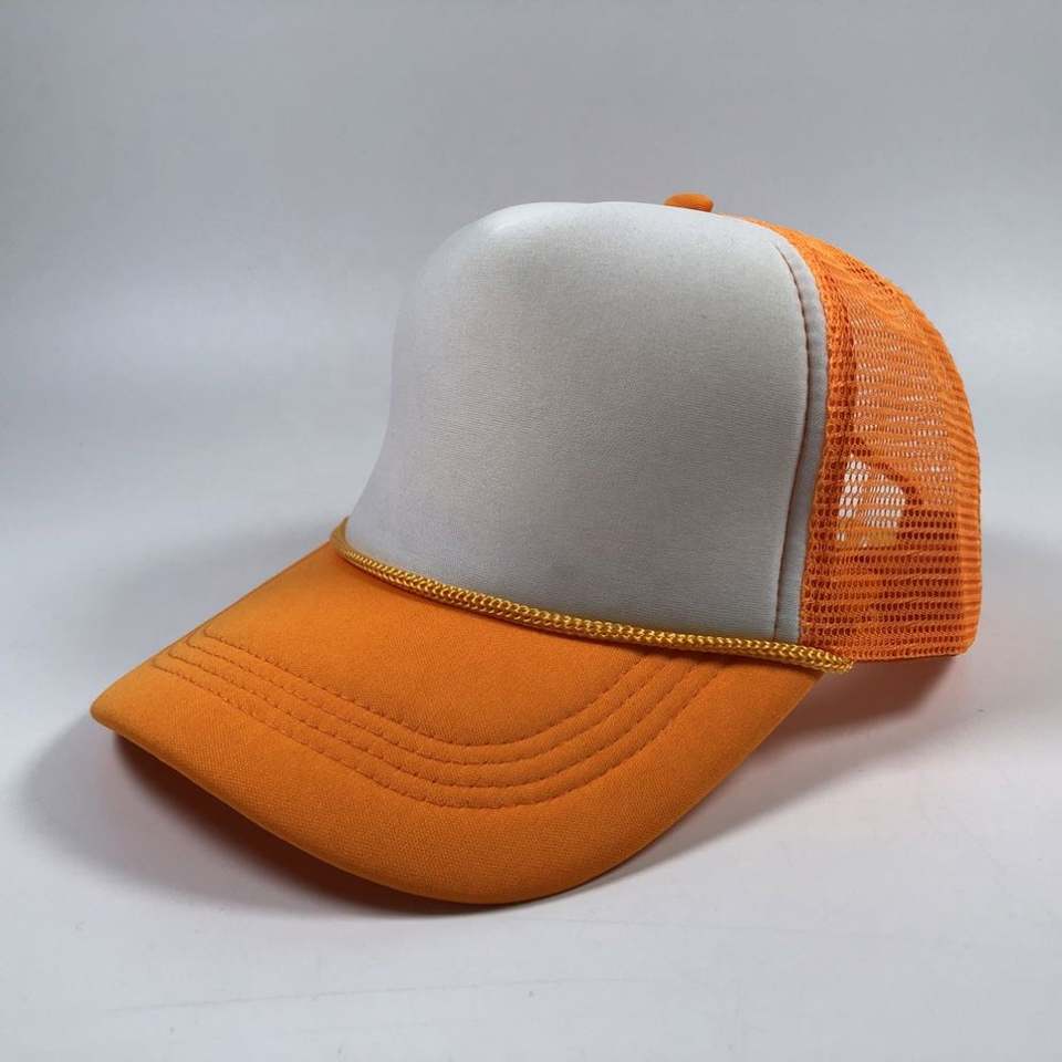 หมวกเบสบอลตาข่าย5แผงผ้าโพลีเอสเตอร์100% สำหรับผู้ใหญ่หมวกโฟมคนขับรถบรรทุกพร้อมเชือกเปล่าออกแบบโลโก้ได้ตามต้องการ