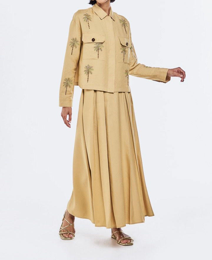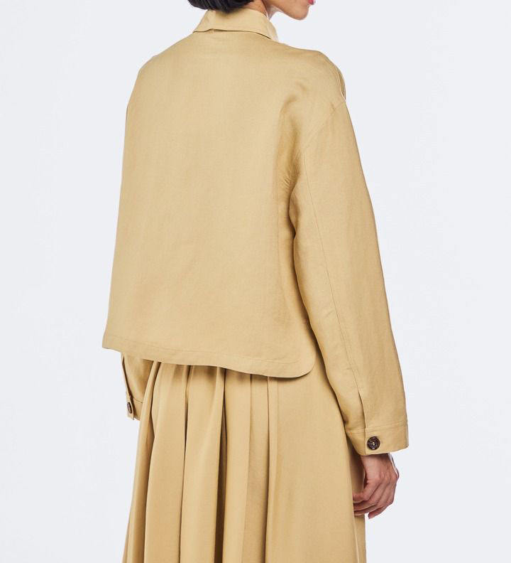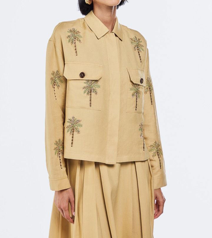 แจ็กเก็ตคอตตอนปักลายลูกปัดผ้าลินินแฟชั่น OEM เสื้อโค้ทเข้ารูปสำหรับผู้หญิงคอเสื้อสองชั้น