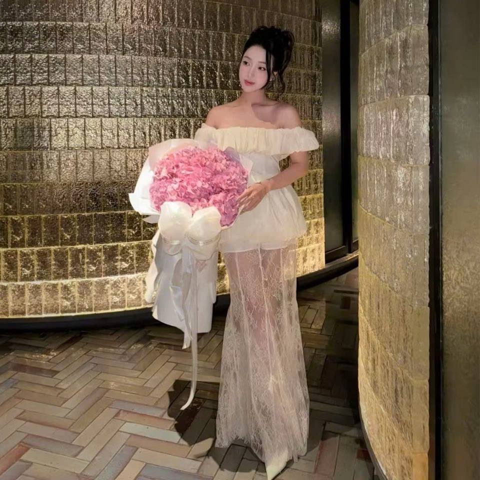ชุดเซ็ตเสื้อชีฟองสีขาวแฟชั่น OEM และกระโปรงยาวลูกไม้สำหรับผู้หญิง คอลเลคชั่นบูติก