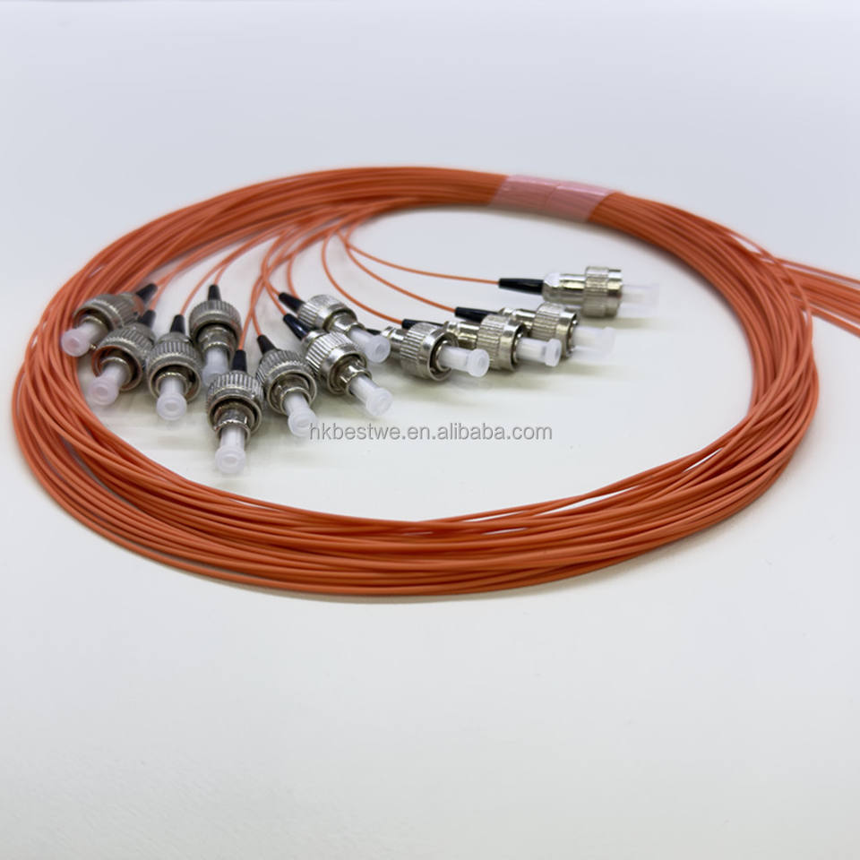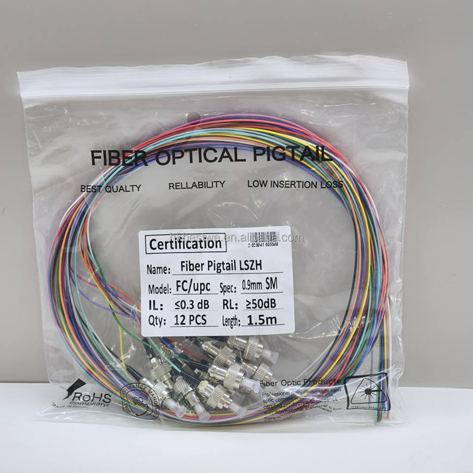 สายไฟเบอร์ออปติกแบบ pigtail FC/UPC single MODE OM2 G652D 0.9mm LSZH 12 Core 1.5M FTTH 850-1550nm FTTx