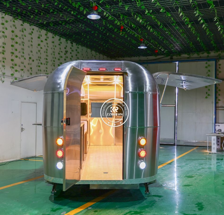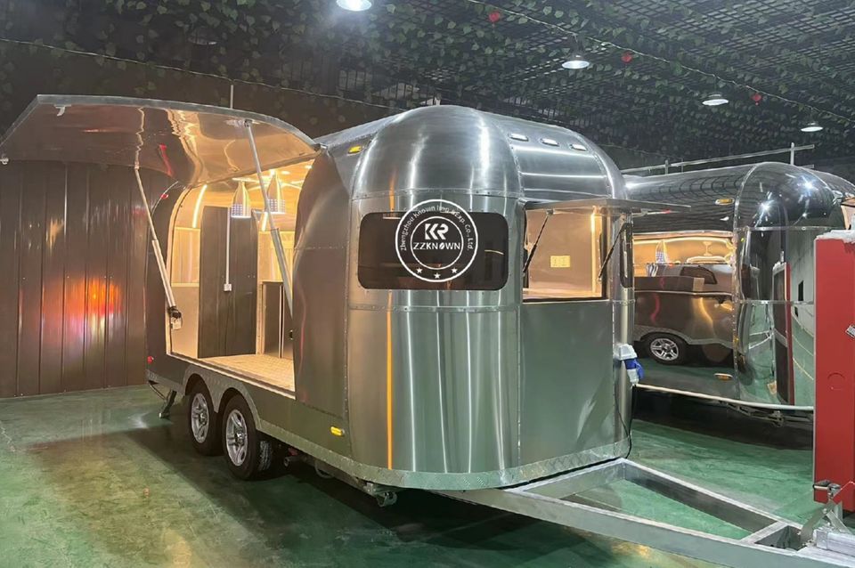 รถพ่วงขายอาหาร OEM แบบยุโรป รถพ่วงขายอาหารปรับแต่งได้พร้อมครัวครบชุด รถเข็นขายแฮมเบอร์เกอร์สำหรับขาย