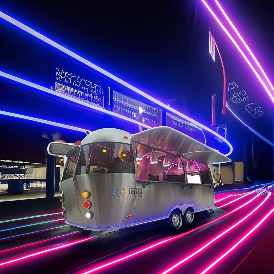รถพ่วงขายอาหารริมทางกลางแจ้ง
