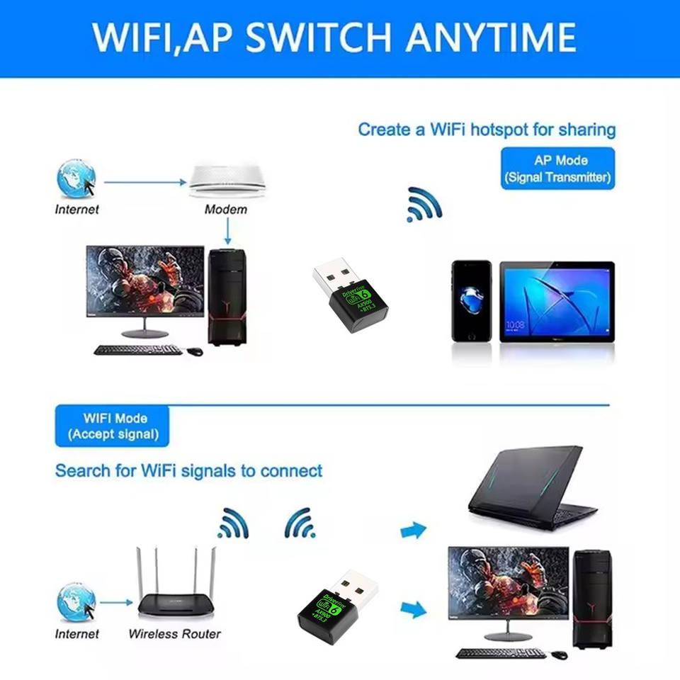 อะแดปเตอร์ Wi-Fi RTL8851BU 900เมตร WiFi6 AX900สองย่านความถี่900Mbps USB อะแดปเตอร์ Wi-Fi สำหรับพีซี