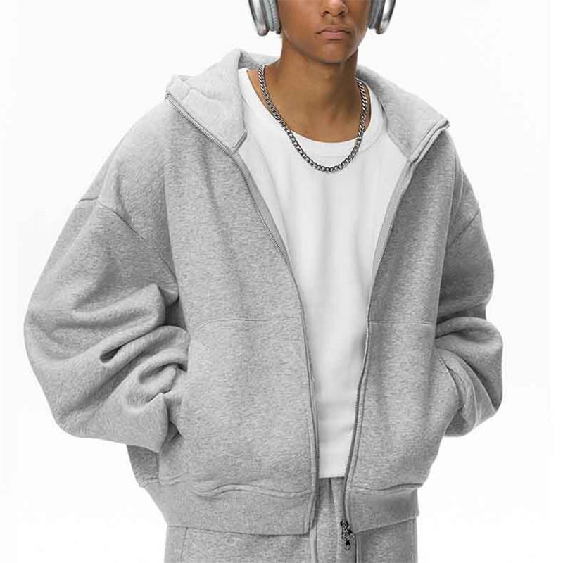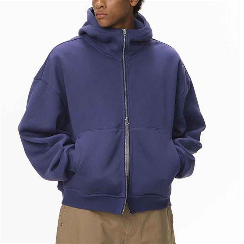 เสื้อฮู้ดดี้ทรงบ็อกซี่แบบสั่งทำพิเศษ OEM พร้อมลายปัก เสื้อฮู้ดดี้ทรงบ็อกซี่แบบครอปสำหรับผู้ชาย ซิปคุณภาพสูง คอสูง ซิป 100% ผ้าฝ้ายหวีอย่างดี เสื้อฮู้ดดี้สำหรับทุกเพศ