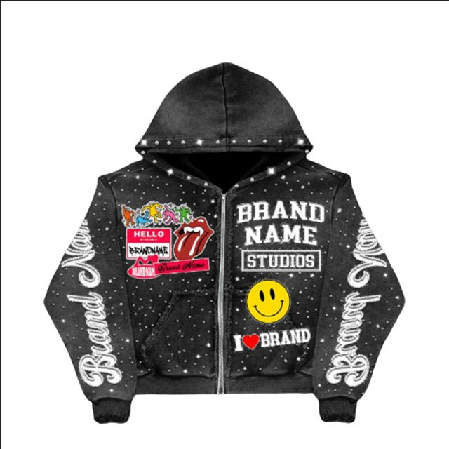 ชุดฮู้ดดี้ผ้าคอตตอนแท้ 100% พิมพ์ลายตามสั่งแบบ OEM พร้อมชุดวอร์มประดับเพชร กางเกงจ็อกเกอร์แบบทำสีซีดสไตล์วินเทจ