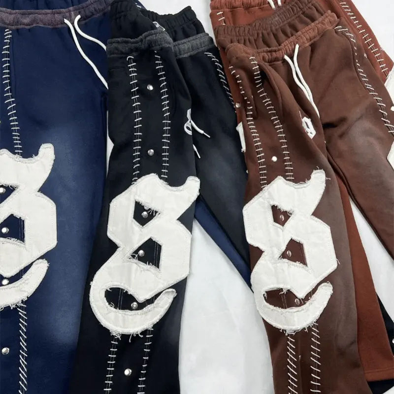 ชุดเซ็ตเสื้อฮู้ดดี้และกางเกงขายาวสไตล์สตรีทแวร์ผ้าคอตตอนหวีอย่างดี ซิปหน้า ล้างสีแบบแอซิดวอช แต่งดีเทลขาดๆ แบบวินเทจ พร้อมบริการปักลายแบบ Reverse Embroidery ตามสั่ง (OEM)