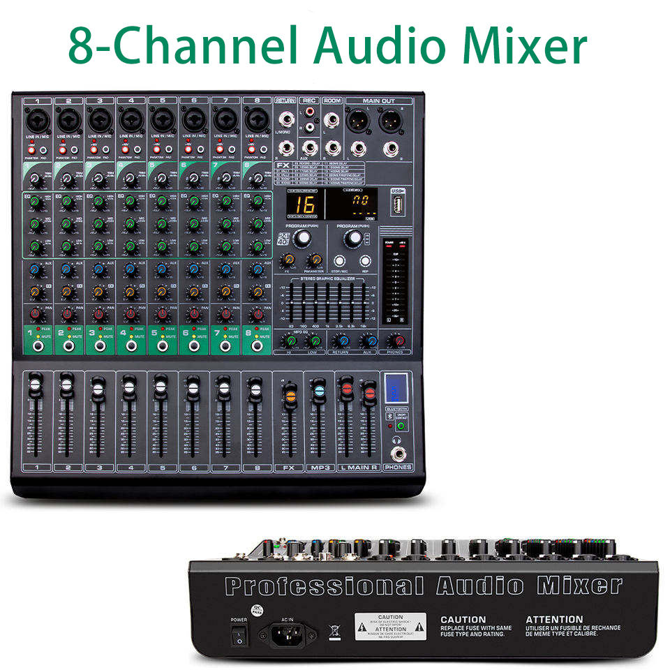 มิกเซอร์เสียงระดับมืออาชีพ OEM G80 พร้อมพลังงาน Phantom 48V มิกเซอร์เสียง 8 ช่อง สำหรับการแสดงบนเวทีขนาดใหญ่ และคาราโอเกะในบ้าน