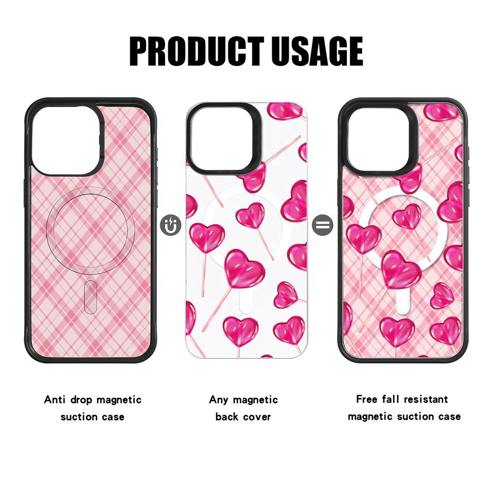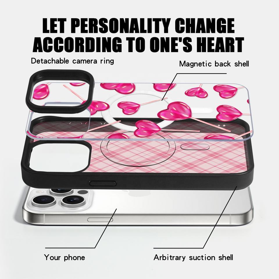 OEM Girly Pink Heart 3-in-1 Detachable Magnetic Phone Case for iPhone 16 15 14 Transparent PC Mobile Cover with Printed Design
